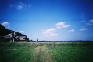 車窓から景色を眺めていたら、丁度稲刈りをしていたので